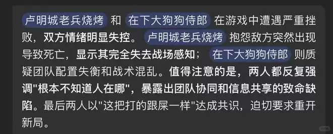看着 AI 一本正经地说「配合出现明显脱节,暴露出战术执行混乱的问题」、还有「李元芳的姗姗来迟,更凸显出团队中的协同漏洞」……莫名有种在批奏折的感觉。
