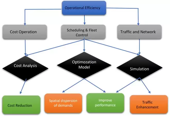 同时,自动驾驶巴士的运营效率涵盖多个维度,包括成本运营、调度与车队管控以及交通与网络优化。常用方法有成本模型、优化模型和仿真模拟,核心目标聚焦于优化车队管理、合理配置资源及降低运营开支。尽管预计能带来经济效益(有望实现成本削减),但相关研究结论存在差异。需强调的是,自动驾驶巴士的成本竞争力并非普适性的,而是取决于具体场景:在特定情况下,其成本优势优于自动驾驶出租车等其他交通方式,但灵活运营模式下的巴士面临行程时间增加、需求空间分散等问题。自动驾驶模块化巴士、乘客需求响应式调度等创新理念,旨在实现效率革新。而实现高效融合,则需要对各类不确定性因素及成本动态进行精细化管控:
