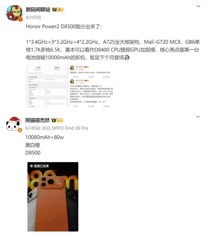 与上一代荣耀Power搭载的第三代骁龙7相比,天玑8500在制程工艺和能效比方面预计会有进一步提升,这对于一款以大电池为卖点的手机而言尤为重要。
