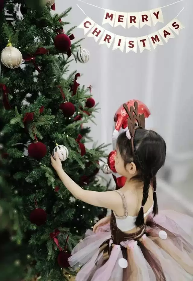 张梓琳先是晒出4岁小女儿照片,照片中Jocelyn扎着两条麻花辫,穿着漂亮的小裙子站在高高的圣诞树旁,伸着小手摆弄着上面的挂饰。只有侧脸入镜的Jocelyn,小脸白白净净肉嘟嘟的好可爱。