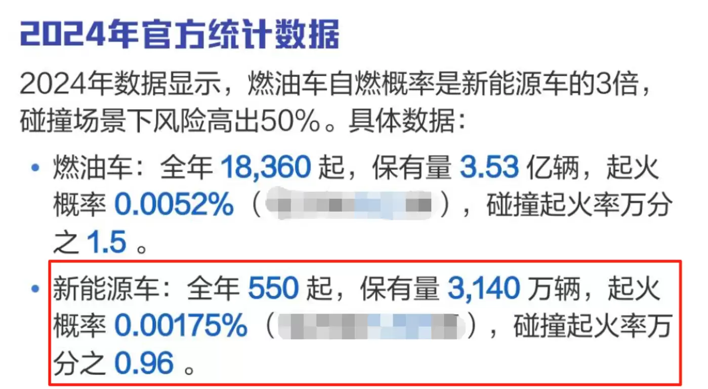 图/2024年燃油车与新能源车起火率来源/互联网 新能源观截图