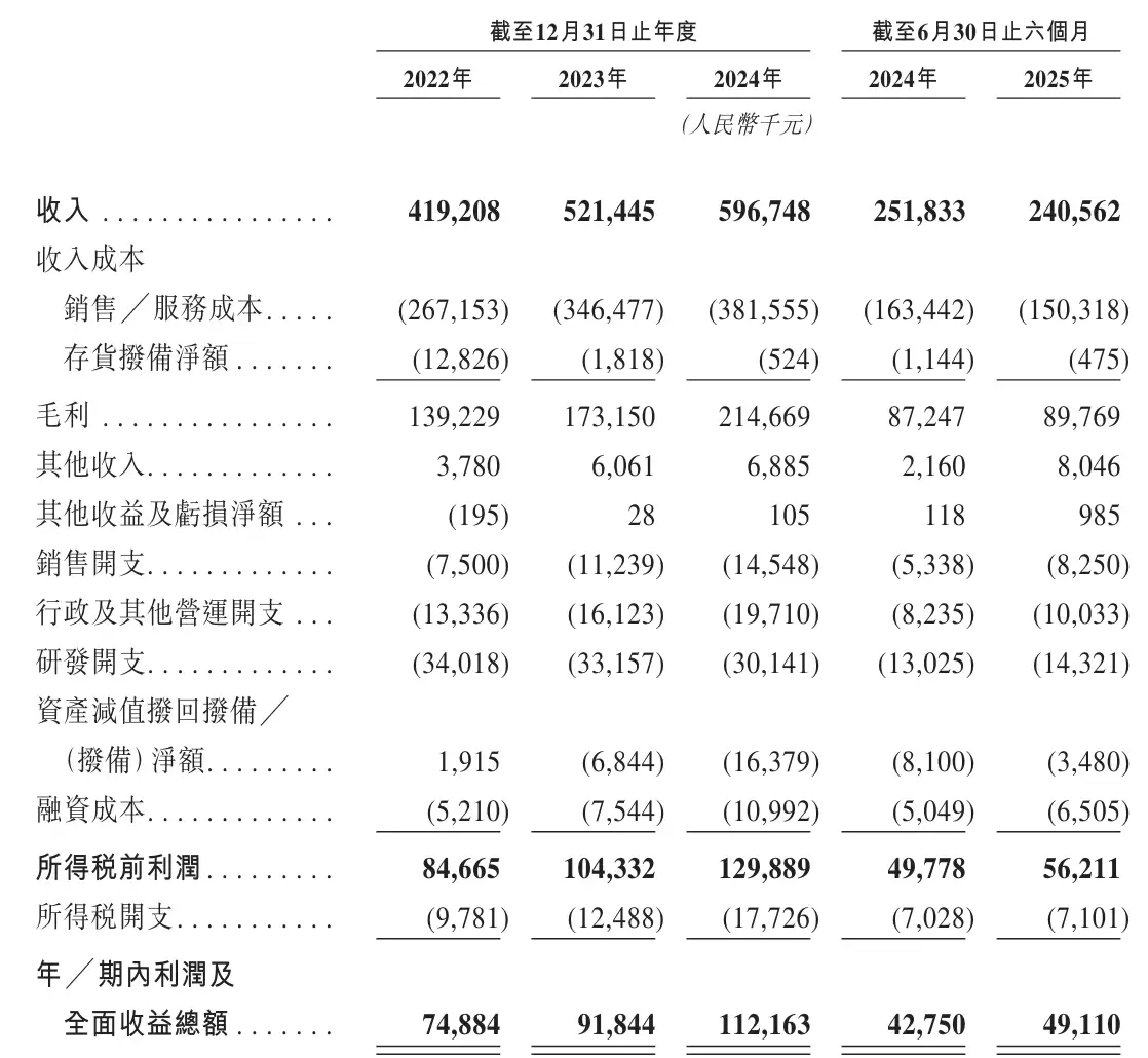 招股书披露的财务数据显示,富通科技在2022年至2024年间保持了稳健增长。营业收入分别为4.19亿元、5.21亿元和6亿元;毛利润分别为1.39亿元、1.73亿元和2.15亿元;期内利润则从7488万元增至1.12亿元,呈现持续上升态势。