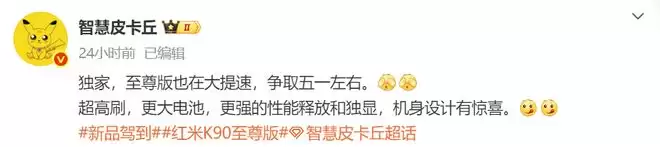 红米K90至尊版五一前发:电池更大,性能更强