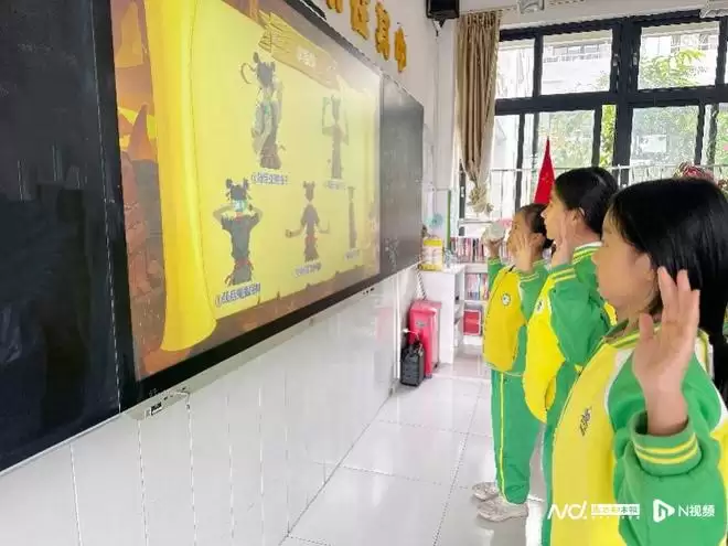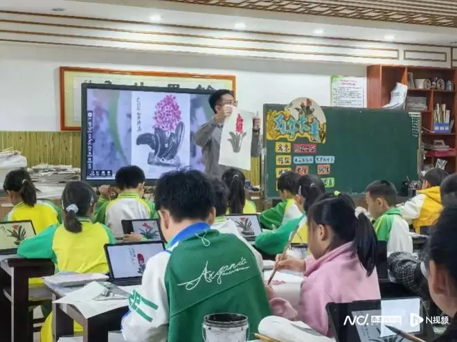 番禺区实验小学通过人机结合,引出课题《万年长青》。