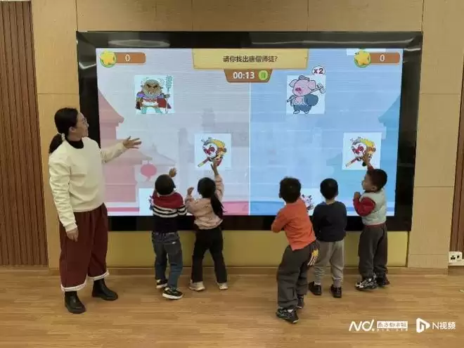 在学前阶段,番禺区直属机关幼儿园着力破解技术应用与课程目标脱节的难题,构建了 “理念引领-路径支撑-实践赋能”三位一体的教师指导体系。通过“主题-技术-五育”三维融合的课程开发路径,教师们在《大话西游》等班本课程中,将AI技术无痕嵌入幼儿一日生活。从班级的常态互动区到功能室的VR深度体验,AI成为支持幼儿“五育”发展的重要力量,推动教师逐步从课程执行者成长为活用技术的课程创生者。