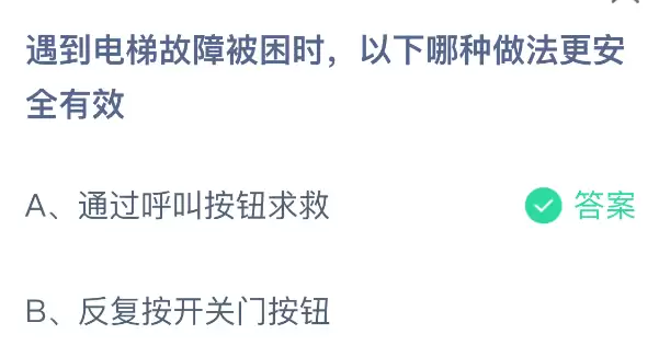 电梯被困时哪种做法更安全有效:蚂蚁庄园12月27日最新解答