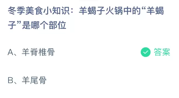羊蝎子火锅选用羊的哪个部位?支付宝庄园12月27日答案揭晓