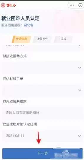 根据页面提示,如实填写相关信息,最后点击“下一步申请认定”即可完成提交。