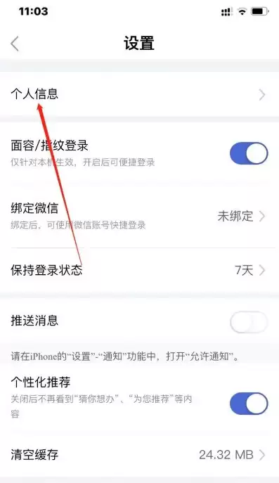 进入设置菜单后,继续选择【个人信息】这一栏。