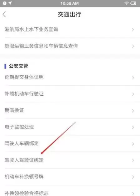 接下来,在展开的服务列表中,找到“驾驶人驾驶证绑定”这一项,点击它并根据页面提示操作,就能成功绑定了。