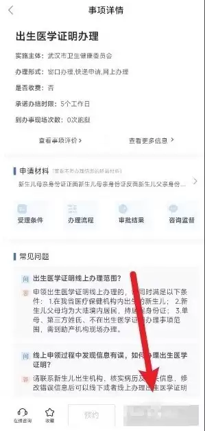 第四步:最后,滑动到页面底部,点击【在线办理】按钮,即可按照后续指引完成申请。