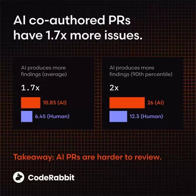 CodeRabbit分析了470个代码合并请求(Pull Request),得出了一个量化的结论: