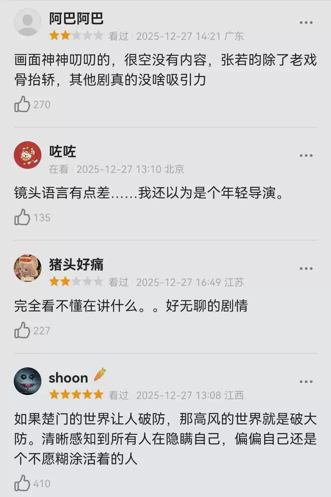 演员表现更是让人眼前一亮,尤其是张若昀,这次是真的突破了。以前看他演《庆余年》《警察荣誉》,都是阳光或者干练的形象,这次饰演的高风,浑身透着迷茫、阴郁的破碎感。