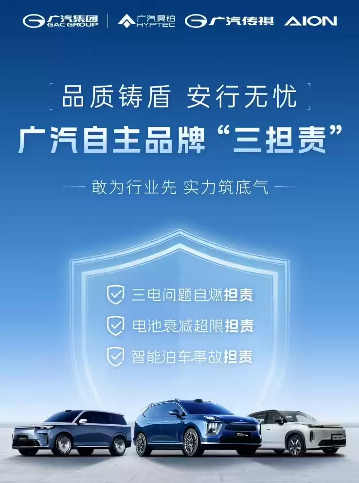 根据广汽集团官方发布,此次覆盖的自主品牌包括广汽昊铂、广汽传祺以及广汽埃安。从最新的宣传资料看,"三担责"政策具体细分为以下三个方面: