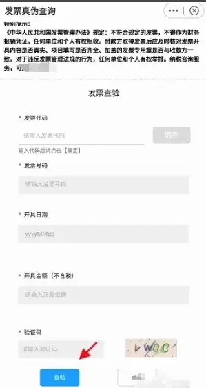 接下来,根据页面提示,输入发票上相关的信息,比如发票代码、发票号码等。