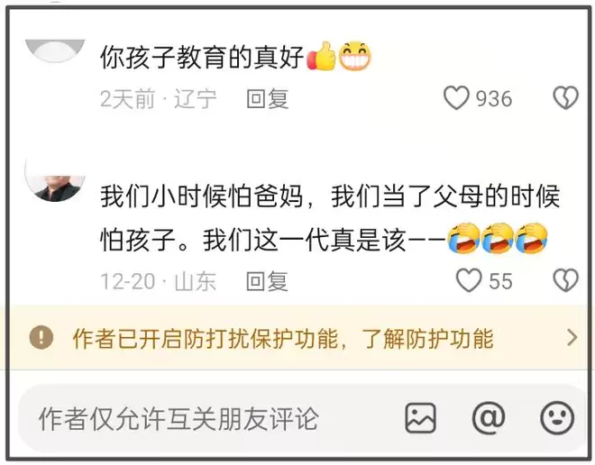 闫学晶为儿子哭穷言论传开后,个人社媒评论区沦陷了,她直接开了防护墙关评,还删除了质疑她言行的评论,留下了一些夸赞她的好评。