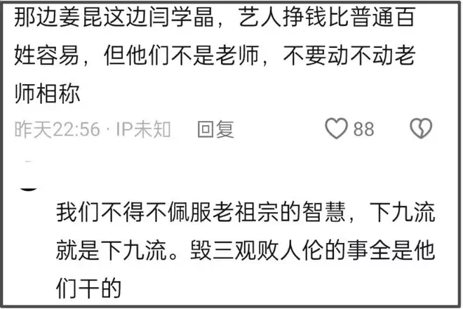 如今在闫学晶相关言论评论区,不少网友已经开始搬出老祖宗的智慧,嘲讽其“下九流就是下九流”。