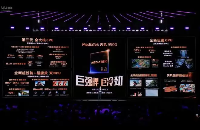 天玑9500采用业界先进的第三代3纳米制程,集成强力焕新的全大核CPU、GPU、NPU、ISP图像处理器等高算力单元,在端侧AI、专业影像、主机级游戏体验以及网络通信等方面开启领航未来的全面跃升。正如联发科技董事、总经理暨营运长陈冠州所说:“AI技术正以前所未有的速度融入大众的日常生活,重塑更便捷、高效和创新的生活和工作方式......天玑 9500 是我们在AI时代的集大成之作,相信基于我们在技术、产品和生态领域的坚定投资,将为旗舰市场增长注入强大动能。”