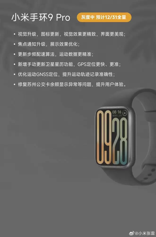 小米穿戴新版进度:手环9及Watch S4 41mm已全面推送更新