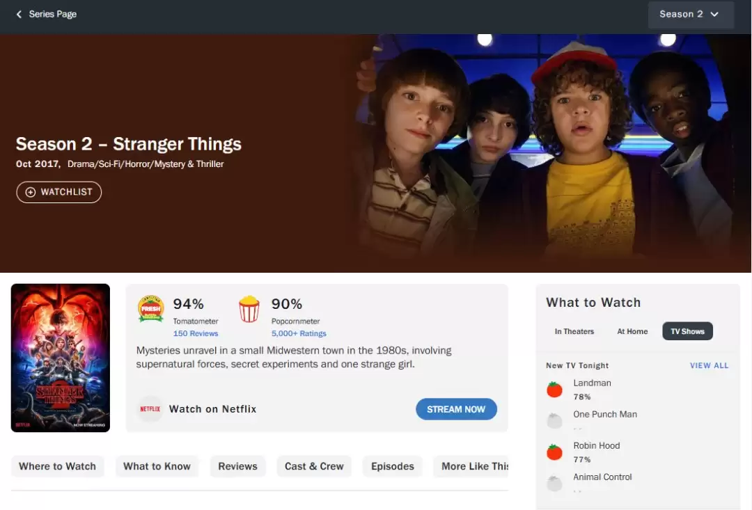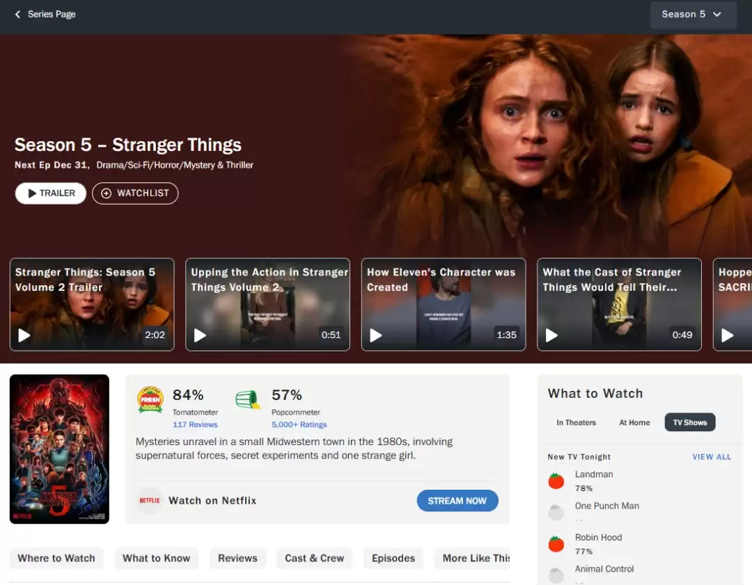 《怪奇物语》第五季的烂番茄评分现已跌至“腐烂”级别。根据烂番茄的观众期望,第五季的观众评分仅有57%,这在该剧历史上尚属首次。