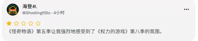 《怪奇物语》第五季的口碑翻车,让观众联想到了《权力的游戏》第八季,认为后者终于迎来了一位“强有力的口碑竞争对手”……
