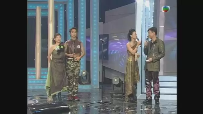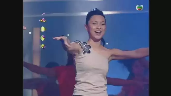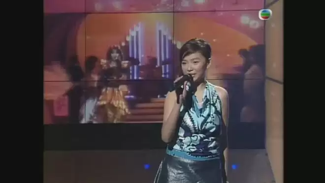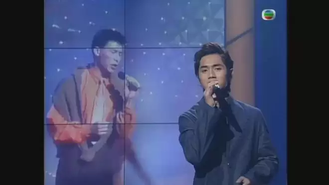 何晶晶當年樣子青澀稚氣,唱梅艷芳《風的季節》。(電視截圖)