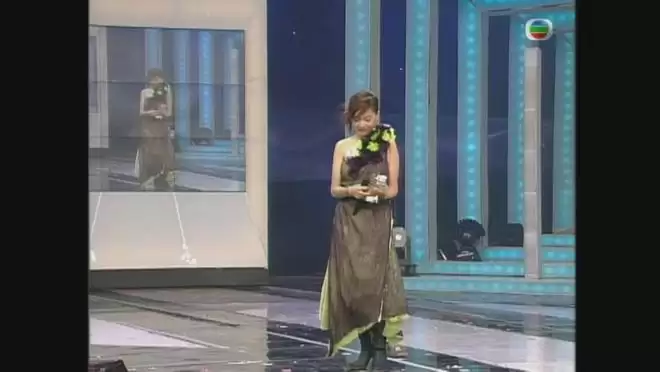 何晶晶在 2001 年《全球華人新秀歌唱大賽》香港區選拔賽中擊敗了鄭俊弘贏得「金咪大獎」(冠軍),表現令人期待。(電視截圖)