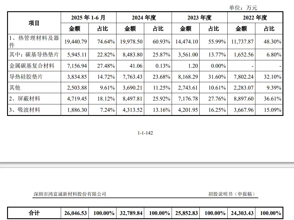 鸿富诚是一家专注于热管理、电磁屏蔽和吸波等先进电子功能材料及器件研发与产业化的国家级专精特新“小巨人”企业,其主要产品包括导热界面材料、电磁屏蔽及吸波材料。