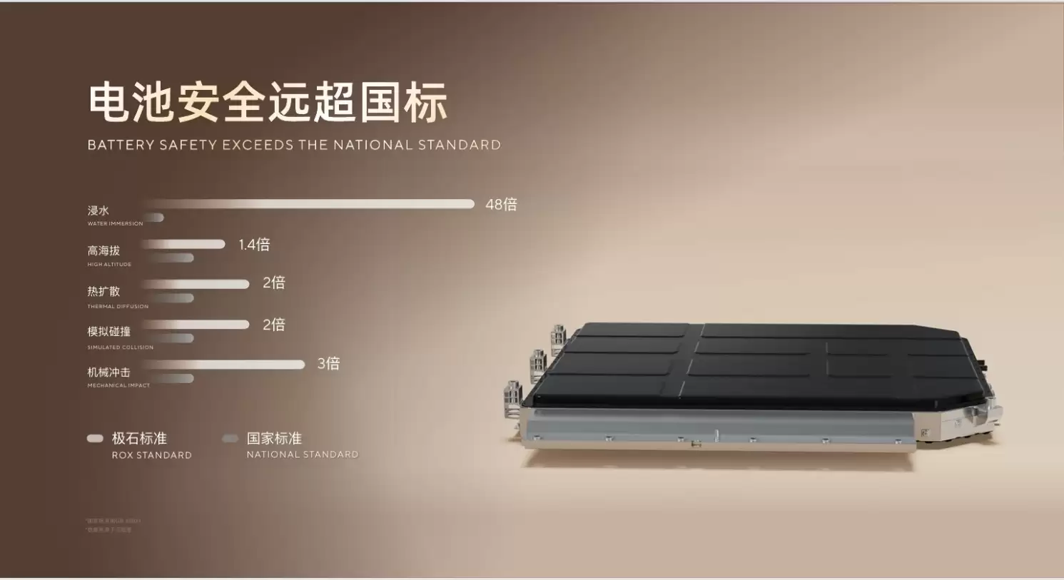 底盘技术方面,新车采用前双叉臂、后H臂全铝悬架结构,标配闭式空气悬架系统与DCC智能阻尼控制,可实时感知路面状态并进行毫秒级软硬调节,在高速巡航与颠簸路段均能提供沉稳舒适的驾乘体验。面对越野场景,具备全地形取向的空气悬架系统支持140mm最大升降行程,车身最大抬升高度可达80mm,一键即可切换运动与越野模式。七种全地形驾驶模式、770mm涉水深度及100%爬坡能力,使其在近期中汽研L3级进阶越野认证中,以满分成绩通过了大交叉轴、鹅卵石路等13项严苛测试。