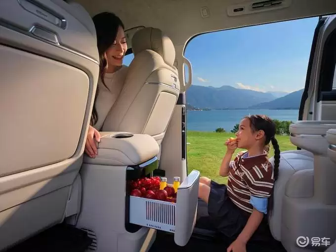 针对多孩家庭需求,V900以“三排平权”理念为核心,打造“全家人都满意的旗舰MPV”。通过3个“1000+”行业首创的空间设计,实现真正的空间平权:二三排纵向空间均超1000mm,180cm身高的乘客也能舒适伸展双腿;后备箱容积达1000L,可容纳15个20寸行李箱,满足七口之家出行需求;1334mm的车内高度与200mm的二排中央通道,让10岁以下儿童可在车内自由活动,家长也能轻松照看后排孩子。座椅采用云感SPA材质,支持加热、通风、记忆及SPA级按摩功能,二三排均可躺倒,配合Flyme Sound无界之垠27扬声器系统与后排娱乐巨幕,打造沉浸式移动影音厅。AI无麦K歌功能让全家旅途充满欢声笑语,超宽温域冷暖箱(-6℃至50℃精准控温)与二排双小桌板(兼顾办公、学习与娱乐)进一步提升了实用性。