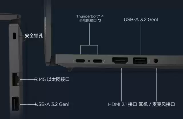 机身接口规格堪称豪华,左侧配备了2个Thunderbolt 4全功能C口、1个USB-A大口、1个HDMI口、1个3.5mm音频口;右侧配备了1个USB-A大口、1个RJ45有线网口,无需依赖扩展坞即可直接连接多种外设。而对于有扩展需求的用户而言,双Thunderbolt 4全功能C口则能够提供高速带宽,无论是外接显示器、进行高速数据传输还是快速充电,都没有问题。电池容量则是52.5Whr,在高能效比的锐龙AI PRO 300系列平台下,能支持较长的时间续航。
