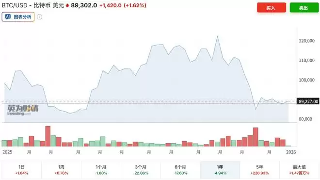 截至12月29日,比特币价格在连续震荡后徘徊于8.9万美元附近,较10月创下的12.6万美元历史高点回落约25%,期间跌幅一度超过30%。