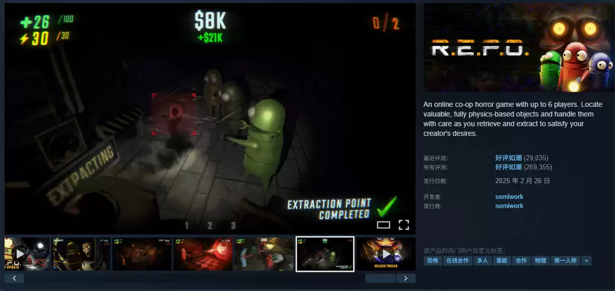 在首都斯德哥尔摩,一家工作室开发的游戏《REPO》直接占据了2025年Steam平台所有游戏总销量的3%,目前该作在Steam上已收获26.9万条评测。