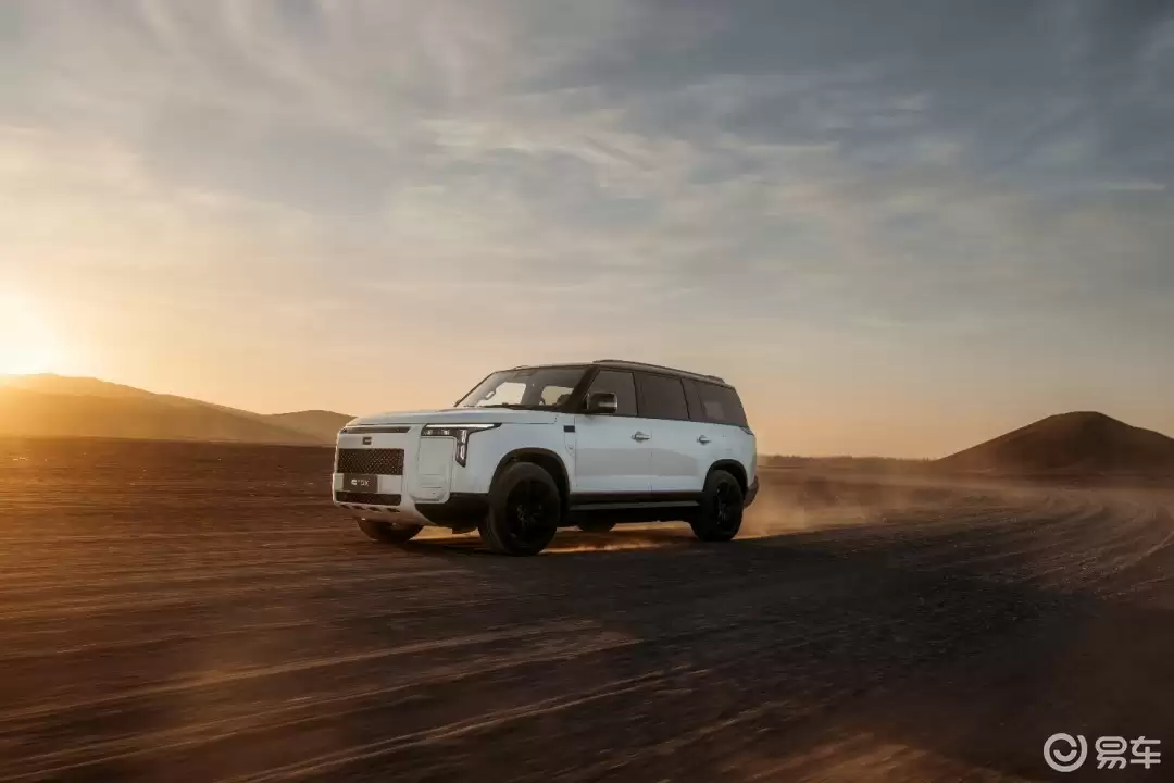 新车延续了品牌标志性的硬派设计语言,车身尺寸超过5米、宽度近2米,采用“方盒子”造型凸显力量感。外观提供流沙金、林野绿、深岩灰、冰川白及星曜黑-黑武士特别版五款配色,其中流沙金灵感源自沙漠落日,强化户外探索属性。前脸配备宽大格栅与犀利灯组,车身侧面线条简洁,全系标配静音电吸门,车尾集成户外餐吧2.0系统,包含折叠操作台与LED照明模块,无缝衔接露营场景需求。