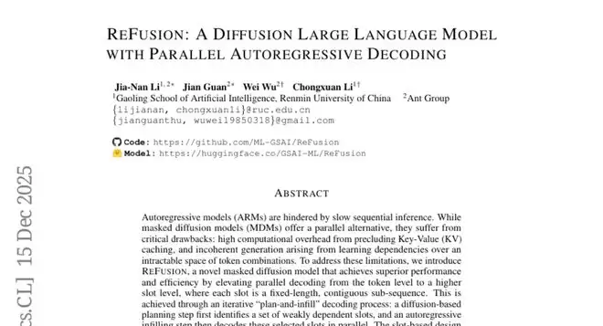 Ant Group与人大合作ReFusion:AI实现思维与表达同步生成