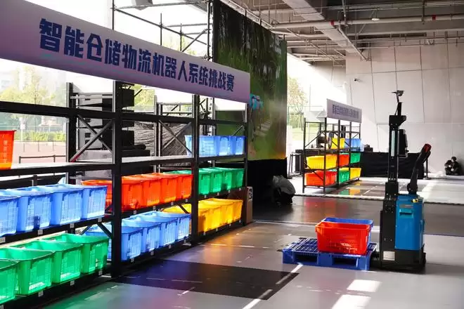 12月27日拍摄的智能仓储物流机器人系统挑战赛现场。新华社记者 王丰 摄