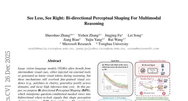 有没有想过,为什么AI有时候能读懂复杂的图表,有时候却在最简单的图片上犯傻?比如看一张医院的X光片,AI可能准确识别出骨折的位置,但看一张超市的价格标签时,却可能把"9.99元"读成"6.66元"。这个问题困扰着整个AI视觉理解领域,而微软亚洲研究院的张硕硕、张艺臻等研究人员联合清华大学的杨玉久教授团队,在2025年12月提出了一项名为"双向感知塑造"(BiPS)的突破性解决方案,相关研究论文发表在arXiv平台上,编号为2512.22120v1。