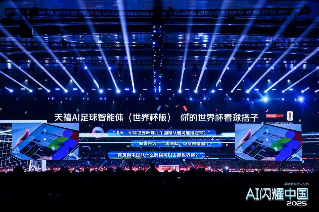 天禧AI基于MCP构建了一个能够安全接管应用、文件与系统设置,实现超级智能体统筹、多领域智能体协同的高效“工作群”,让学习、生活、娱乐、工作等场景体验尽享愉悦。尤其在体育场景,天禧AI体验“让科技更加闪耀”。联想作为2026年国际足联世界杯最新技术合作伙伴,深度参与赛事内容制作、智能运营、直转播等核心环节。为提升球迷观赛体验,联想正式推出“你的世界杯看球搭档”——联想天禧AI足球智能体世界杯版。吴晓波现场通过联想YOGA Pad Pro 14.5 AI平板实时演示天禧AI足球智能体世界杯版,从快速选择支持的主队,到深度分析2026年世界杯夺冠热门,再到热议“中国队何时跻身世界杯赛场”等球迷关切话题,趣味互动与专业分析交织,瞬间点燃全场热情。