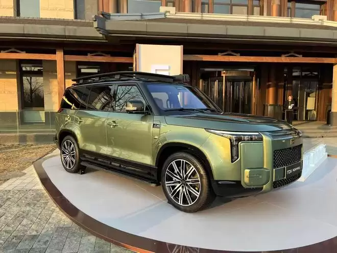 作为品牌旗舰产品,极石ADAMAS延续了极石家族标志性的硬朗设计风格。新车车长超过5米,车宽接近2米,整体造型强调体量感与稳定感,突出全地形取向。外观配色方面,ADAMAS提供流沙金、林野绿、深岩灰、冰川白以及星曜黑-黑武士特别版共五种颜色选择。