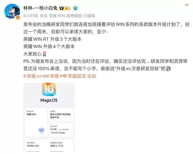 另外,荣耀中国区智慧生活业务部部长林林今日发文表示: