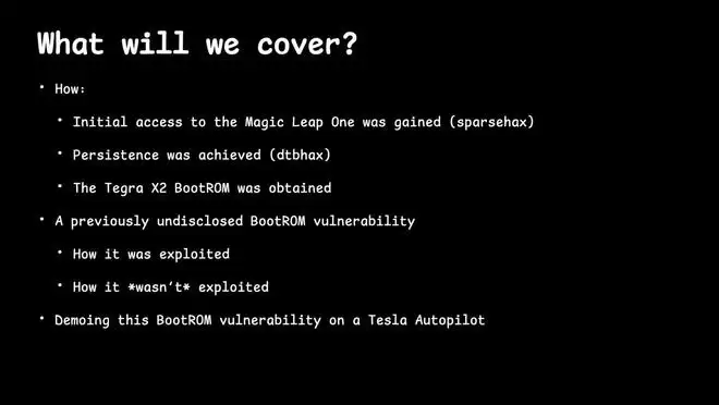 这一发现的影响范围远超Magic Leap头显本身。Katze在演示中证实,由于特斯拉的Autopilot 2和2.5自动驾驶硬件同样采用了Tegra X2芯片,该漏洞对特斯拉车辆同样有效。这意味着,只要物理接触到车辆的硬件接口,攻击者便能利用相同的手段绕过安全启动链,完全接管自动驾驶计算平台。