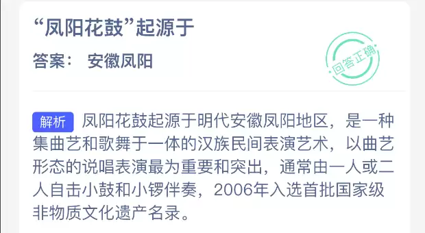 花鼓起源凤阳?支付宝蚂蚁新村2025最新答案揭晓