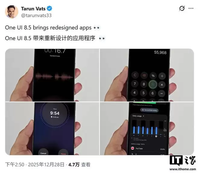 IT之家查询消息源推文,附上其他相关One UI 8.5应用的新版UI截图如下: