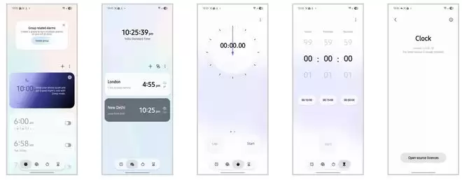 三星One UI 8.5时钟应用体验:多彩动态背景与悬浮胶囊菜单