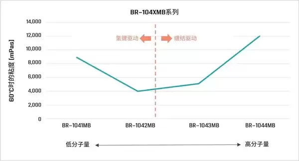 低聚物的粘度表现主要取决于两大核心要素:材料的整体分子量以及其化学结构中的极性基团。Bomar的BR-104xMB系列产品正是基于对这些因素的深入研究,实现了卓越的粘度调控。技术数据表明,这些低聚物材料在未经稀释时,其粘度主要由氢键效应驱动;而在稀释之后,缠结效应则开始主导粘度的变化,这种独特的转换模式彰显出其出色的可控性能。