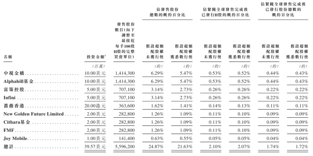 此次上市的基石投资者阵容颇为亮眼,包括中视金桥、Alphahill基金、富策控股、Infini、蔷薇香港、New Golden Future、Cithara基金、FMF以及Joy Mobile,九家机构合计认购金额达3957万美元。这些投资者的参与,为迅策的上市提供了有力的资金支持与市场信心。