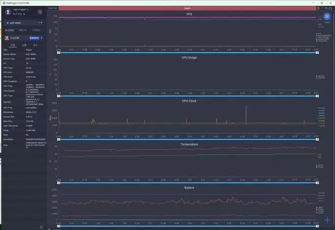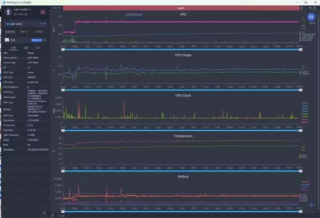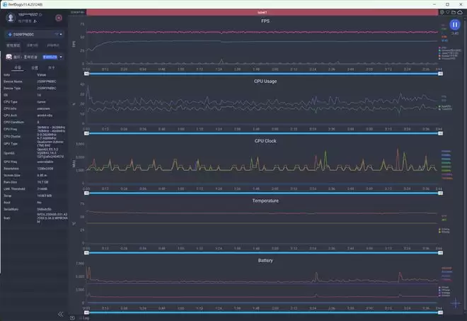 另外一款骁龙8 Elite Gen5手机,帧率也是60FPS,SOC温度54度,功耗3400mW。