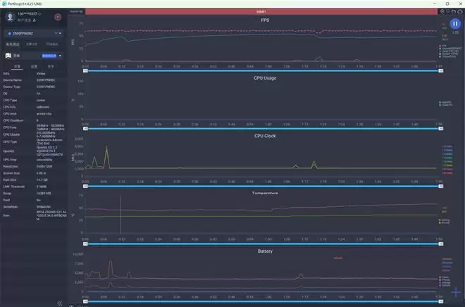 另外一款骁龙8 Elite Gen5手机,帧率也是60FPS,SOC温度57度,功耗4400mW。