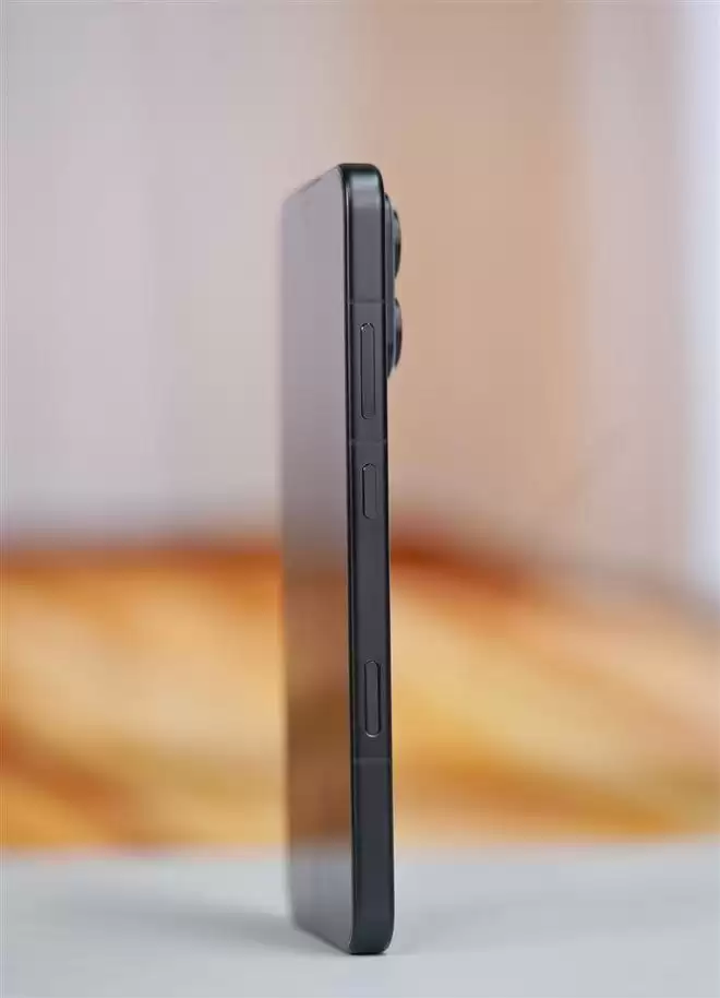 机身右侧从上到下依次是音量键、开机键、拍照快门按钮。