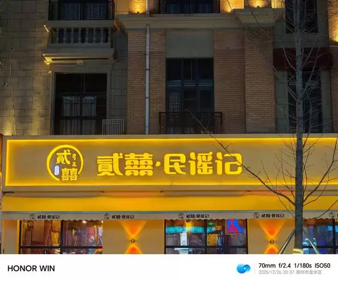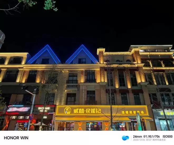 荣耀WIN的主摄和长焦都是原生5000万像素,夜景拍摄时为了让每个像素点获得足够的亮度,我们选择输出为1200万像素,也就是4合1像素。